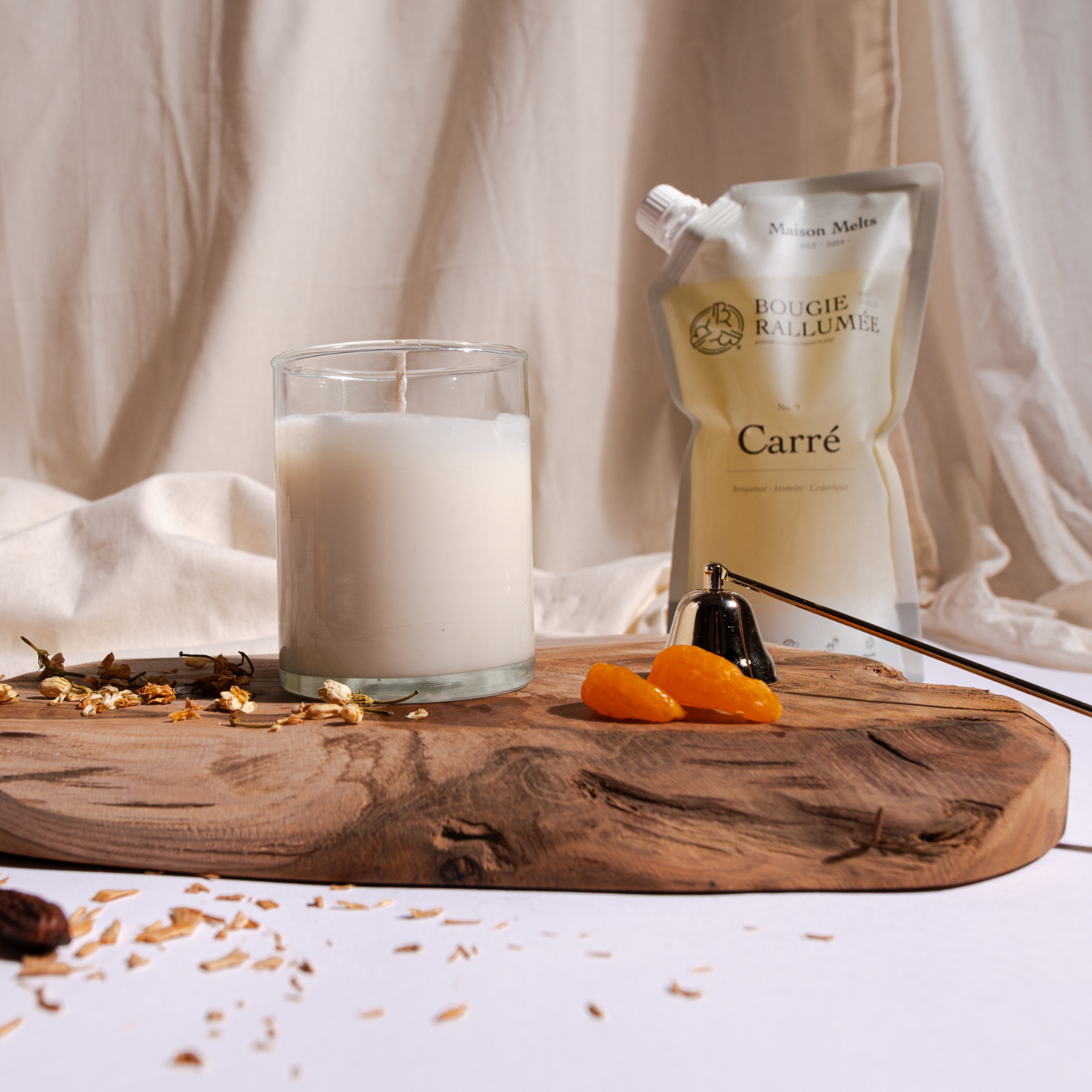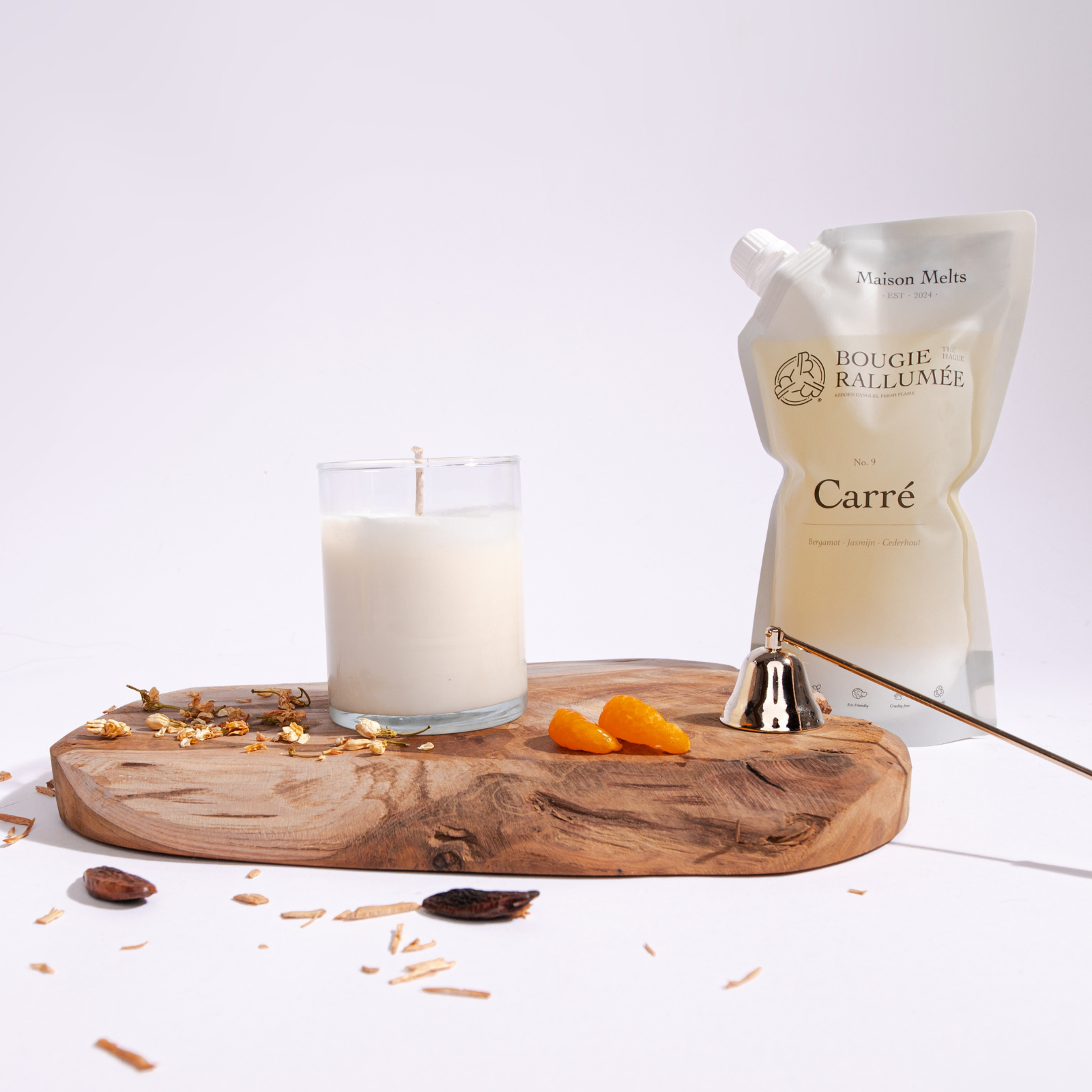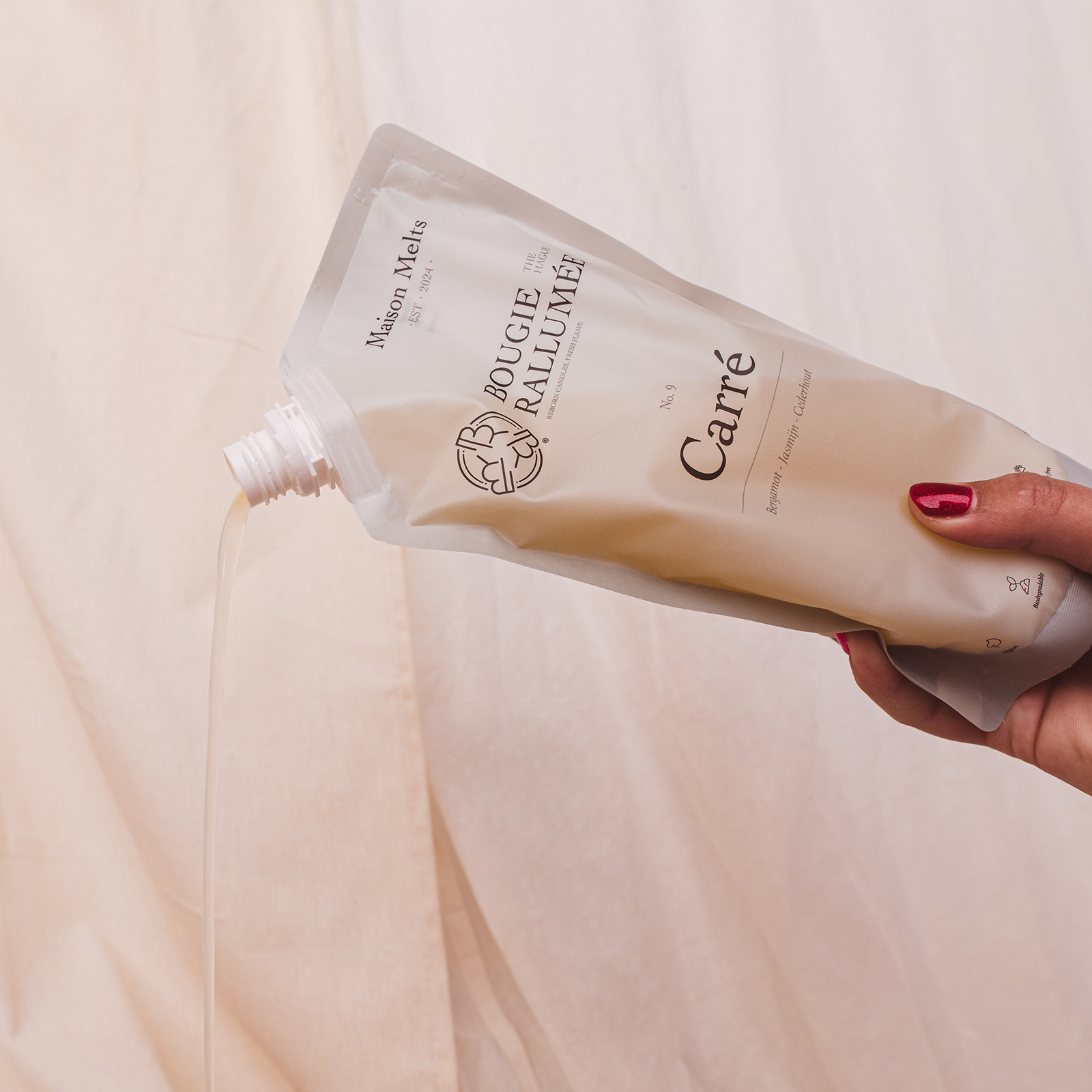 Wanneer je de Maison Melts in een pan verwarmt, mogen de Maison Melts niet in aanraking komen met de pan zonder water. Gebruik altijd een waterbad.