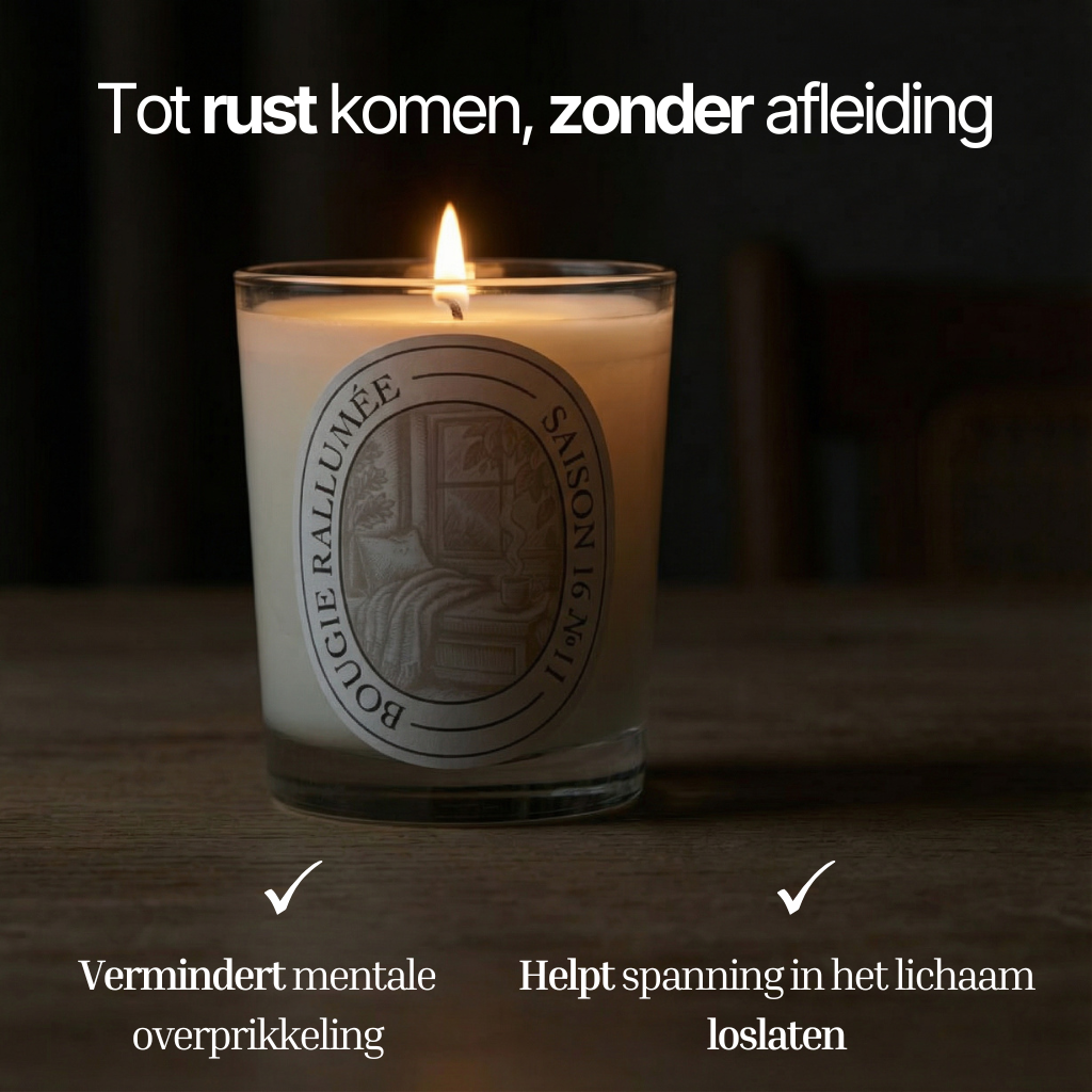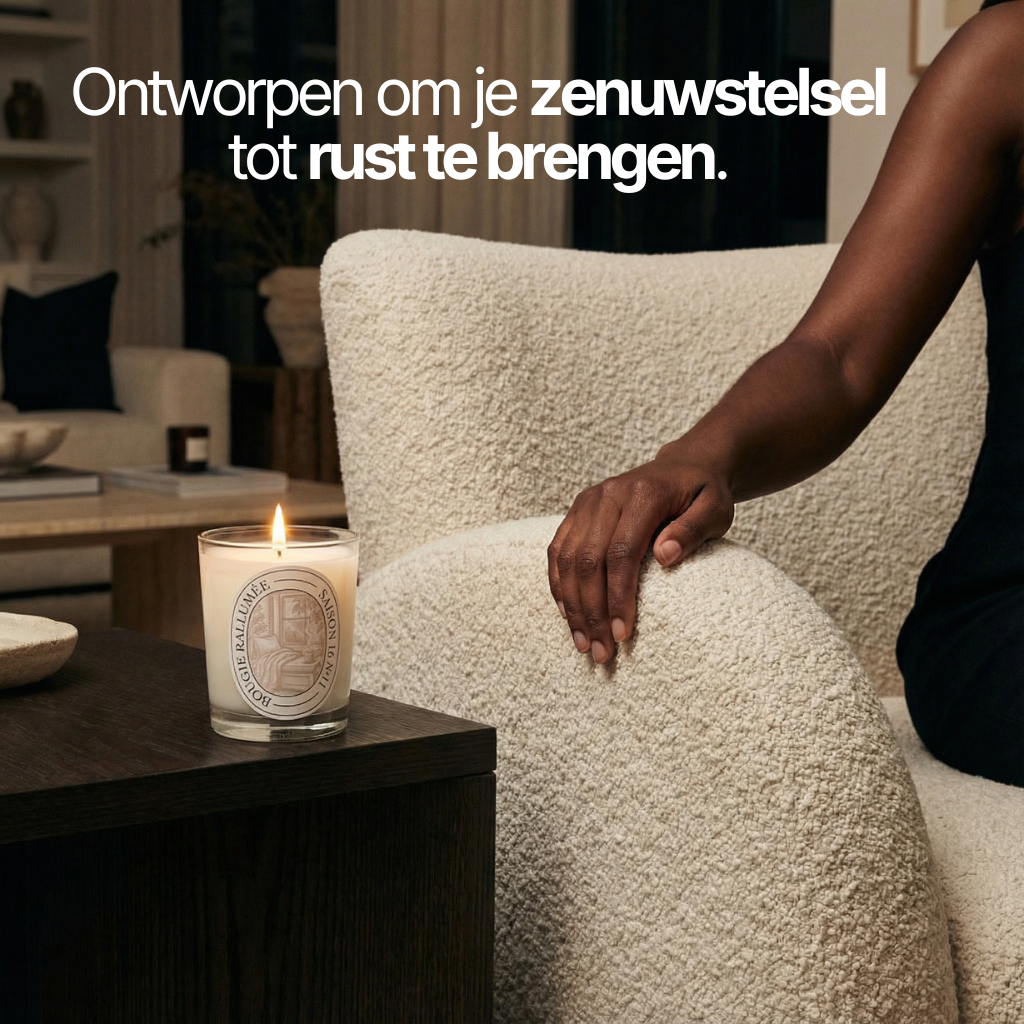 Een warme, zachte geurkaars die direct rust brengt en je lichaam richting een cortisol-verlagende ontspanningsstaat beweegt.